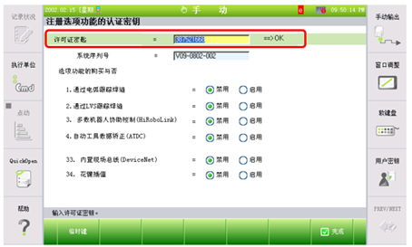 『[F2]:系统』→『2:控制参数』→『10:注册选项功能的许可密匙』
